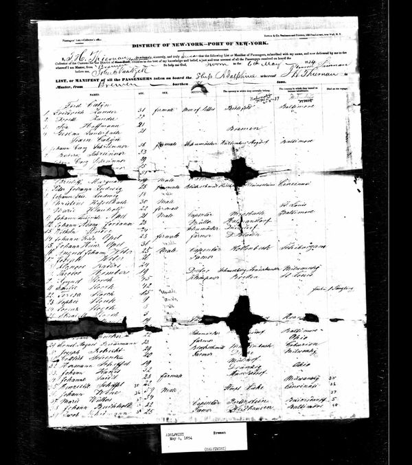 The ship departed from the Port of Bremen, Germany most likely traveling northward up the Weser River to the North Sea and then turning its sails westward for the 4,485 nautical mile trip to America.